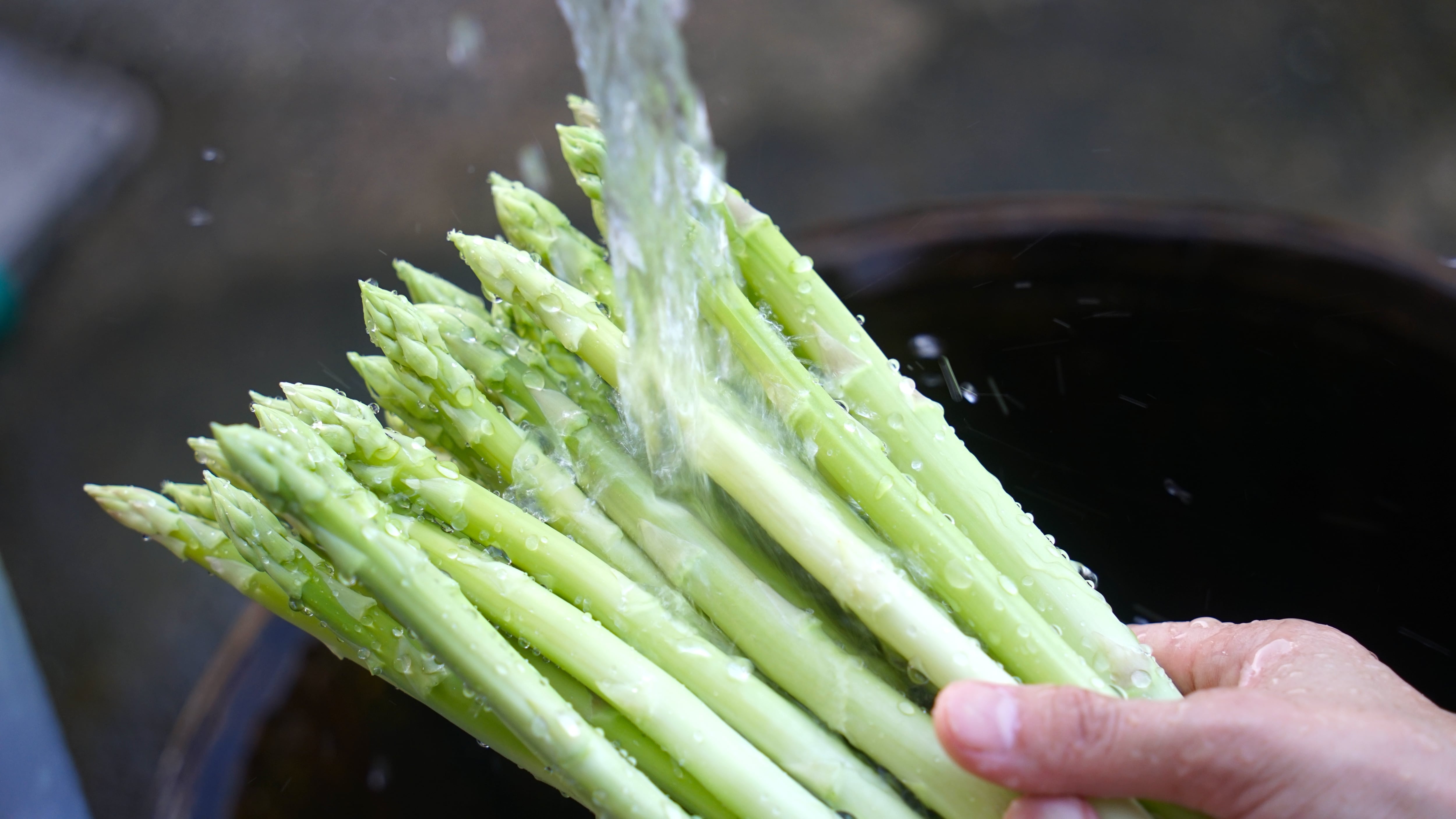 自噴水と寒暖差で育った柔らかアスパラは、その名の通り、水源から自噴する清冽な水と、寒暖差による厳しい環境で育った逞しいアスパラガスです。この自然の恩恵を受けたアスパラガスは、見た目にも美しく、食感も柔らかく、上品な甘みが特徴です。